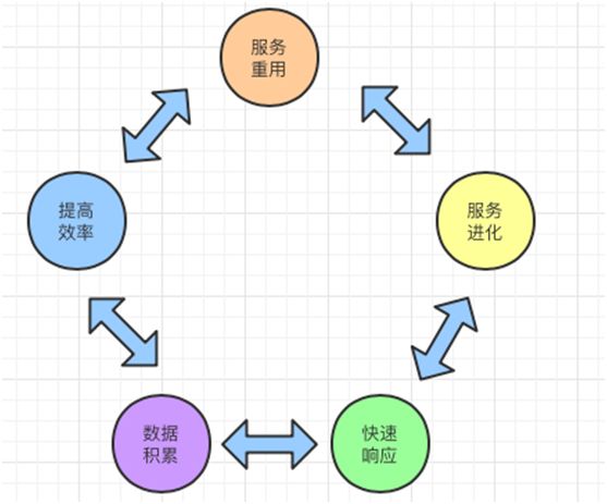 技术方面:服务重用,服务进化,快速响应,数据积累,提高效率相辅相成